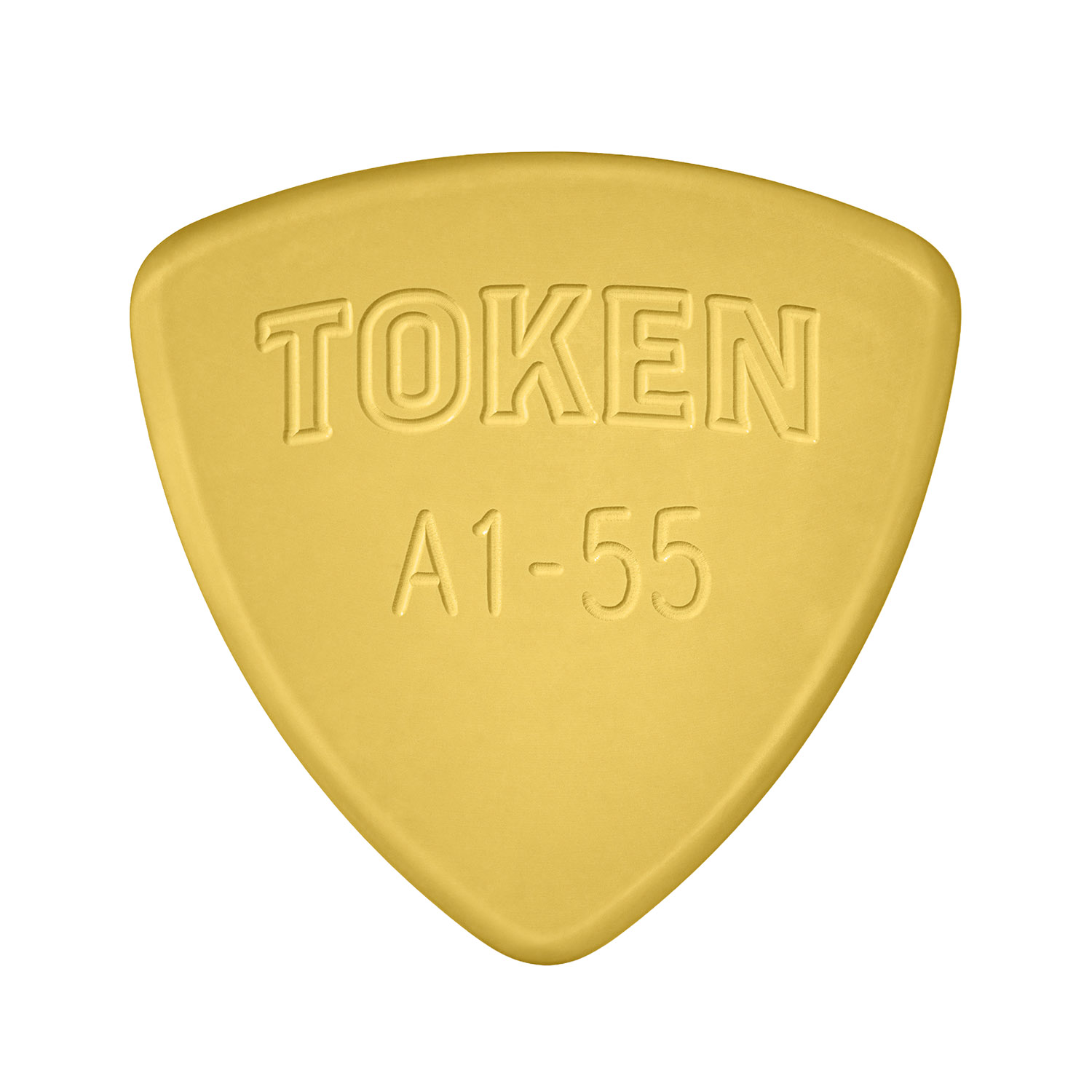 Token Amber A1-55 flatpick made of Polyetherimide (PEI).